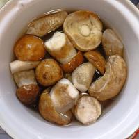 (347) Так тоже делаем, вакууматор помогает хорошо, но это удел белых и сморчков весной. В этот раз сдуру согласился с женой и разрешил черных груздей на засолку взять. Через неделю будем по банкам распихивать. У них в засолке цвет красивый, а на вкус довольно хредний грибок.