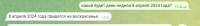 какой будет день недели 8 апреля 2024 года? возвращает Согласно григорианскому календарю, 8 апреля 2024 года будет вторником. Это только у меня так? |