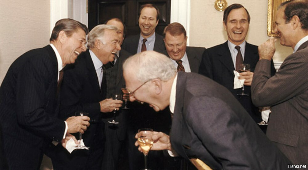 емнп , у стены, с салфеткой в руках, Буш старший стоит