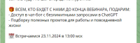 Сегодня 22.11.2024 в 13.00 будет бесплатный вебинар по сравнению российских и западных нейроночек. Записывайтесь. Бонусом получите бесплатный безлимитный доступ к ChatGPT