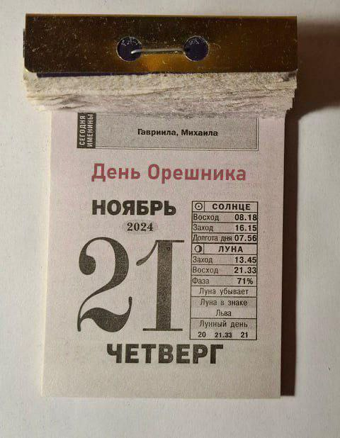 В ответ на применение американского и британского дальнобойного оружия 21 ноября 2024 года российские вооруженные силы нанесли комбинированный удар по одному из объектов оборонно-промышленного комплекса Украины ("Южмаш" в Днепропетровске). В боевых условиях было проведено в том числе и испытание одной из новейших российских ракетных систем средней дальности. В данном случае с баллистической ракетой в безъядерном гиперзвуковым оснащении. Наши ракетчики назвали её "Орешник".