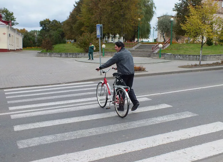 (85) Смотри внимательнее, он идет пешком по переходу и ведет велик.