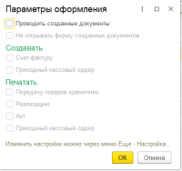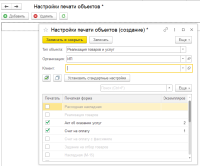 (0) В форме списка заказов клиентов - Еще - Настройка комплекта документов