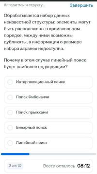 Это вопрос с сертификации. Да, кстати, "Линейный поиск", считается не верным ответом.