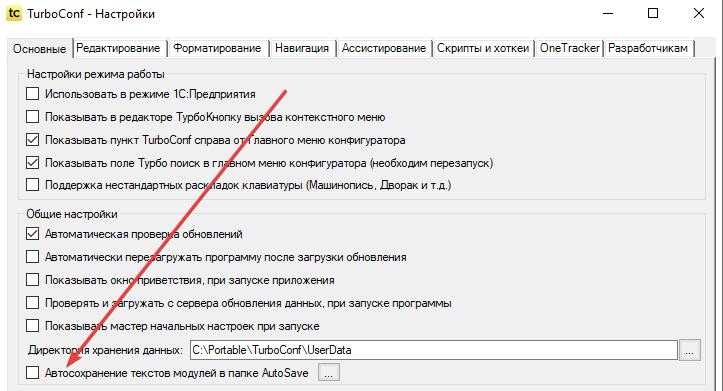(10) Турбоконф умеет в конфигураторе авто сохранять тексты отредактированных в окнах модулей в папку. Но я этим не пользуюсь, т.к. сам часто жму CTRL+S и еще при этом ошибки компиляции правлю.