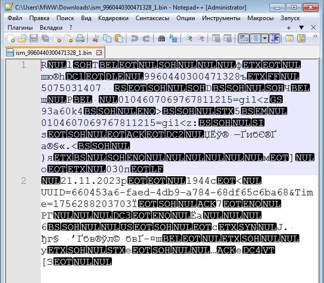 Вот, как выглядит уведомление в TLV, и изменение кодировки в Notepad++ тут не помогает, все равно остается не читаемым, как-то хитро закодировано: