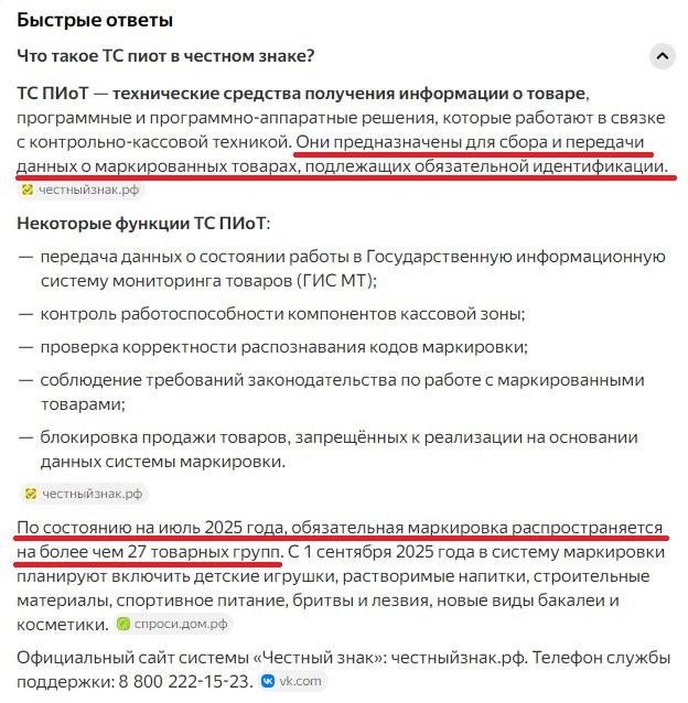 PS Мистяне, кто в теме, поддержите, а то я тут "распинаюсь" в одиночку, такое чувство, что мне больше всех надо... Мне пох на самом деле, у моих клиентов все, что связано с РР, работает как должно, с самого момента, как это появилось, при чем по всем ТГ, по которым даже пока обязательности нет(по этим ТГ есть возможность у кассиров отказаться от проверки, если не находит ЧЗ марку), просто хочу помочь...