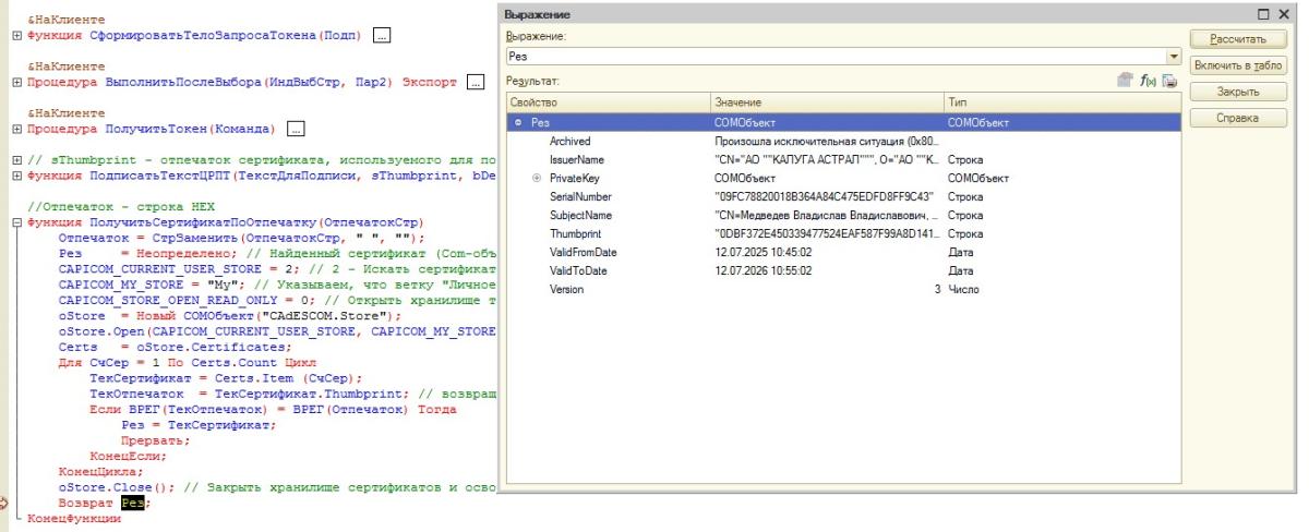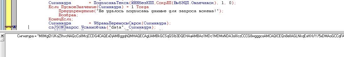 "Пример получения токена при авторизации с прикрепленной подписью / подписание документов с открепленной подписью на 1С"