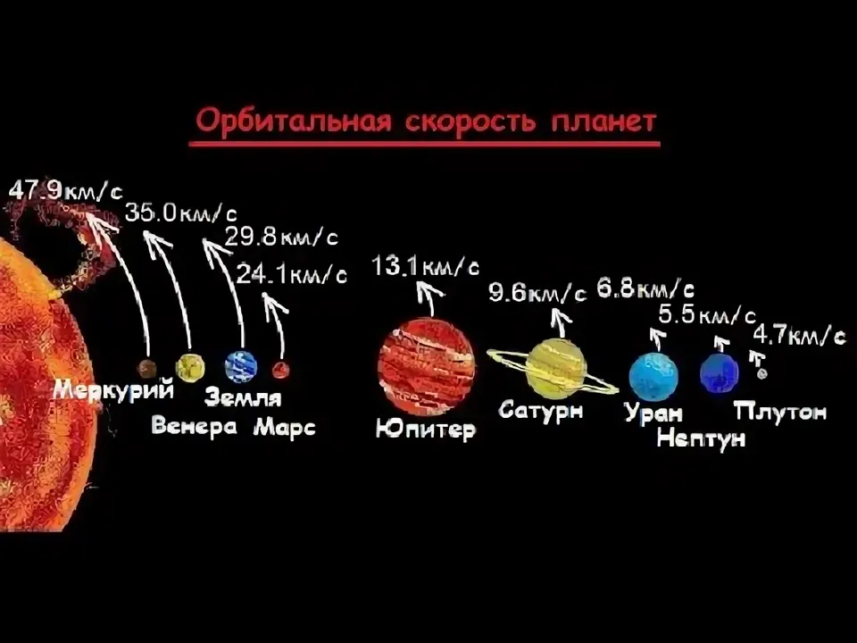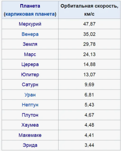 Орбитальная скорость планет в Солнечной системе убывает в связи с расстоянием от Солнца.