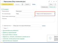 (9) этот реквизит и не выведен на форму элемента номенклатуры. он меняется при выборе вида номенклатуры. что это меняет? -) |