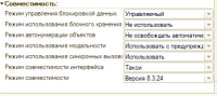 (22) Нет там режима совместимости вообще - отключено. И разве режим совместимости должен влиять на работу конфигуратора? Няп, он просто должен дурить при натыкании на функцию, которую он не знает - но обычно такие вызовы лежат где-то в общих модулях, которые зачастую никому почти не нужны (было такое в древние времена: из-за одной-единственной строки (я специально искал тогда) 1С потребовала повышение платформы).