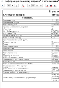 Еще, иногда (1) показывает обычно последнего владельца. Иногда - не показывает марку совсем. Если Товарная группа не доступна у участника оборота чья КЭП, чаще всего причина... Но, это уже нужно конкретно смотреть. "Свои" марки покажет точно, насчет "чужих" - бывают нюансы... Но, это уже от нас не зависит, это особенности ЧЗ. |